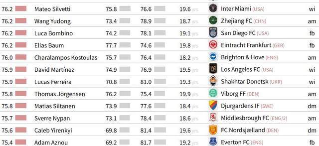 现在是时候让王尤东尽早出国了。国际体育研究中心发布的最新数据研究报告已在联盟中收集了48位超级巨星,并??终于是世界上200名最佳球员,当时20名。该报告给了他73.4的经验,表现分数为78.9。如果您只是按性能排名,那么您也可以在世界上排名第51位。我会告诉你王尤东背后的三名球员,您将知道他今天的位置。第56位排名的第一个是Eliasbaum,他是Bundesliga Frankfurt的权利,净资产高达800万欧元。上个赛季,他在埃弗斯堡借了埃弗斯堡,这是全力NG球队。作为德甲联赛的后卫,他可以贡献3个进球,5个进球在德甲中有助于,他的数据很棒。这次他还将跟随法兰克福与德甲联赛竞争。第二个是-57的排名,更令人惊讶。这是希腊前锋科斯图拉斯(Kosturas)的时间,他花了3500万欧元S签署英超联赛。他与团队签订了五年合同。他绝对是布莱顿专注于训练的新明星。他只有18岁,只有比王·尤东(Wang Yudong)大几个月,他的未来是无限的。第三名是第64名,是英超联赛中19岁的恩登的后卫Aznu。埃弗顿本赛季花了900万欧元转让费,并从拜仁慕尼黑买了他。在上个赛季的拼写中,他表现出色,并成为西甲的主要球员。预计他本赛季将在英超联赛中首次亮相。在这份名单上,阿根廷超级巨星Matteo Sylveti仅以420万欧元的转会费加入了迈阿密国际,他的总得分与王·尤东(Wang Yudong)的总分相同,均为76.2。他是梅西的前锋。可以说,王尤东的能力和表现得到了世界足球的认可。如果他真的可以出来,那么欧洲五个主要的联赛就不会绝望! (老子)