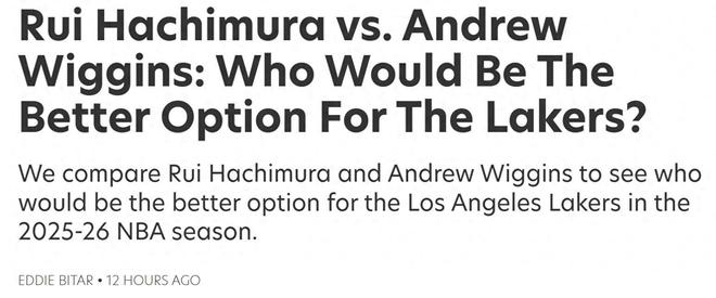 Hachimura vs Wiggins!谁是湖人更合适的球员?当湖人再次对威金斯感兴趣时,美国媒体是“ Fadeawaywor”