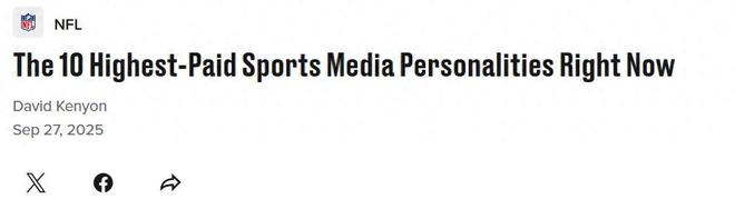 奥尼尔每年仅排名第7至1500万!随着“美国Yan Yi”签署了五年,与ESPN签订了ESPN合同的1.05亿份合同,美国媒体宣布,“ BleacherReport”在体育行业中拥有前10名著名名人名单,“ American Yang Yi”赢得了冠军。第十名:乔·巴克(Joe Buck)(1500万)乔·巴克(Joe Buck)是NFL和MLB中最受欢迎的评论员之一。他在Fox Sports工作了很长时间。他已经五年,7500万美元的脂肪合同尚未改用ESPN,这使他成为了蜂鸣器的Be Be-Beat列表。九个地方:Al Michaels(1500万)Al Michaels是广播行业中最具标志性的声音。在过去的50年中,这种方式一直是这种方式。从CBS到NBC再到ABC,AL Michaels仍在体育行业中闪耀,一年获得了1500万美元的高薪。八个地方:奥尼尔(1500万)是NBA历史上球员的基本内饰,奥尼尔连续三个冠军在他的期间完成了三个冠军专业球员。退休了11年后,他成功改变了一名篮球分析师。凭借专业球员的知识,顶级明星的各种观点以及他们出色的窍门,他们很快就会在评论行业中站起来,并成为TNT最令人震惊的评论之一。根据Front Office Sports的说法,O'Neal的年薪达到1500万美元,两方达到了长期合同。第七区:柯克·赫伯特(Kirk Herbtreet)(1600万美元)柯克·赫伯特(Kirk Herbtreet)以其在ESPN的“大学GameDay”计划中的剩余表现而闻名,并且每年可以赚取600万美元。随着您的补充,他还在ABC黄金时段播出了NFL游戏,这项工作每年可以带来八位数的收入。第六区域:帕特·麦卡菲(Pat McAfee)(1700万)作为前足球运动员,帕特·麦卡菲(Pat McAfee)在退休后改变了评论员,并以其融合风格(以专业精神和幽默感)成为WWE评论行业中星星的迅速增长之一。 22年,他已经获得了五年,8500万美元的ESPN,他在第六名中成功排名。第五区:托尼·罗莫(Tony Romo)(1800万)在他的职业生涯中为达拉斯牛仔队(Dallas Cowboys)效力了多年,并专注于橄榄球工作了14年。结果,在与橄榄球领域告别后,他改变了专业的高尔夫球。如此丰富的经历使他在退休后加入了评论行业。 Matapos完成了他的第一笔廉价三年合同,他与CBS签订了一份10年的脂肪合同,持续了20年。第四名:特洛伊·埃克曼(Troy Eckman)(1800万)是一名传奇的足球运动员,他在退休后致力于NFL的评论行业。在22年中,他在福克斯(Fox)完成了20年的评论生涯,并搬到了ESPN。双方签署了一份五年的脂肪合同,为9000万。第三名:巴克利(2100万)作为奥尼尔的合伙人,巴克利早些时候加入了评论行业,并提前建立了声誉,这成为了THE最受欢迎的篮球评论员。因此,当时22年,巴克利还与TNT签订了为期10年的合同,据马克兰(Marchland)称,该合同的薪水高达2.1亿美元。第二名:汤姆·布雷迪(Tom Brady)(3750万)是足球史上的马力超级巨星,汤姆·布雷迪(Tom Brady)在退休前很早就与解释签署了一份合同。在22年的时间里,福克斯肯定与汤姆·布雷迪(Tom Brady)签下了一份为期10年,3.75亿美元的合同,他们在退休后也加入了福克斯NFL评论员。第一名:A-Smith(4000万)为“这些有争议的行动,导致A-Smith签署了五年,与ESPN的1.05亿元合同,以及与Siriusxm和Siriusxm和Podcast收入的三年3600万合同,年度A-Smith收入达到4000万。