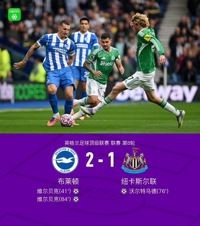 北京时间10月18日,英超第8轮比赛打响。布莱顿主场迎战纽卡斯尔联。比赛中,吕特送出温和助攻,帮助维尔贝克率先打破僵局。刘易斯·米利随后为沃尔特·马德创造了一个好机会,后者冷静地破门将比分扳平。比赛结束后,维尔贝克再次挺身而出,攻入致胜一球。最终布莱顿2-1击败纽卡斯尔联全取三分。主赛事第41分钟,维尔贝克单刀破门,布莱顿1-0纽卡斯尔。英超独家看咪咕第77分钟写意!沃尔特·马德随后轻松破门,纽卡斯尔联1-1战平布莱顿。第85分钟,维尔贝克禁区前长距离射门梅开二度。布莱顿2-1纽卡斯尔。独家观看英超联赛。只在米谷。双方球员均已入场,比赛即将开始。第7分钟,吉马良斯凌空抽射球从禁区中央射出,偏出了门柱。独家观看咪咕第20分钟英超联赛。吕特禁区外横向带球,远射击中球门。爸爸从侧面把球救了出来。英超独家观看咪咕第41分钟。维尔贝克单刀破门。布莱顿1-0纽卡斯尔。英超独家观看咪咕第50分钟。阿亚利禁区左侧射门远角,皮球滑落。独家观看咪咕第77分钟英超联赛。写意!沃尔特·马德尔轻松破门,纽卡斯尔联1-1战平布莱顿。在咪咕上独家观看英超联赛。第85分钟,维尔贝克禁区前远角射门梅开二度。布莱顿2-1纽卡斯尔。在咪咕上独家观看英超联赛。球队技术统计【咪咕独家观看英超联赛】特别声明:以上内容(如有则包括照片或视频)由自媒体平台“网易号”用户上传发布。本平台仅提供信息存储服务。
